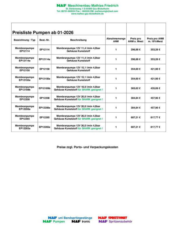 Preisliste MAF Pumpen