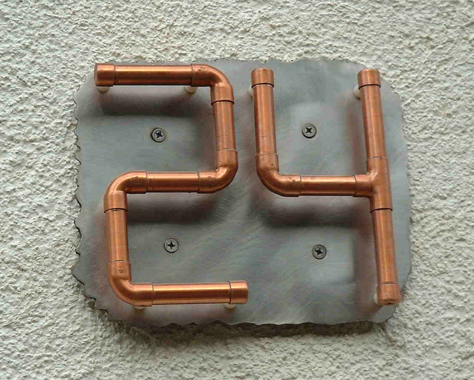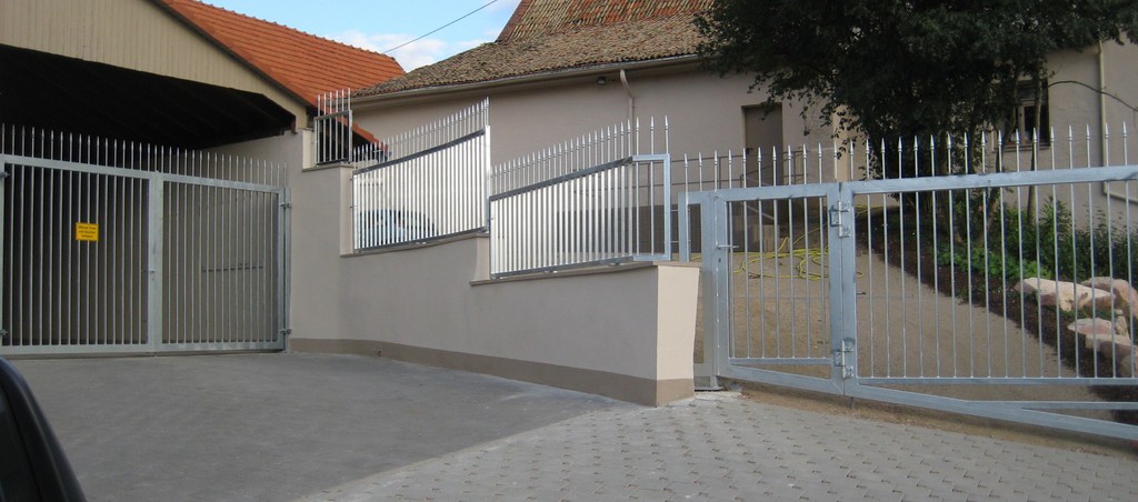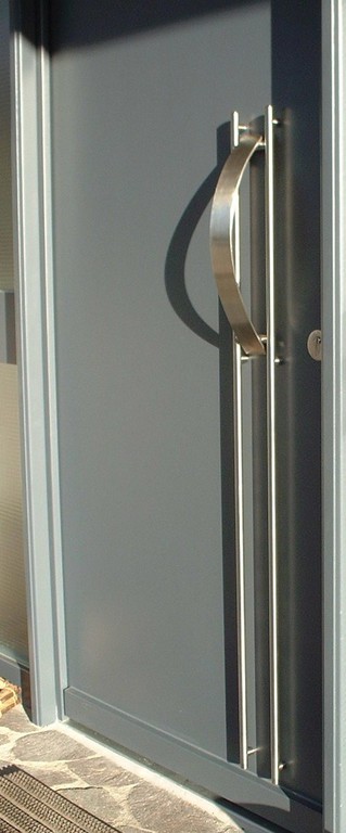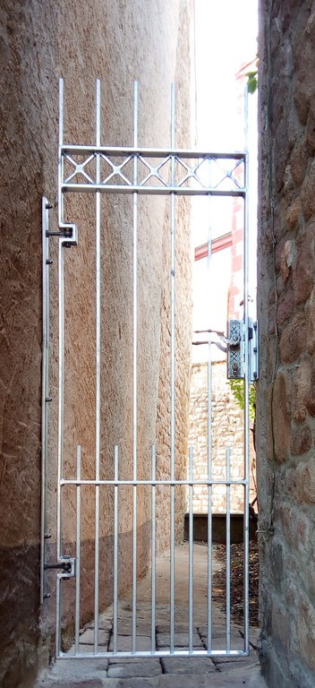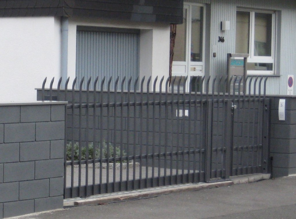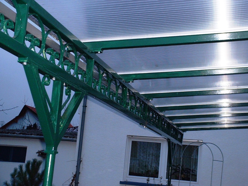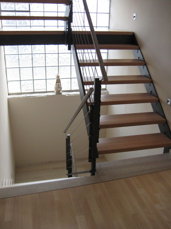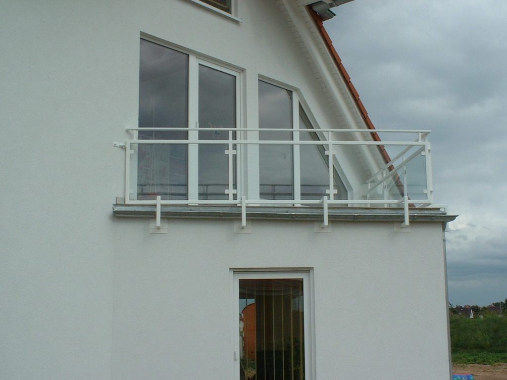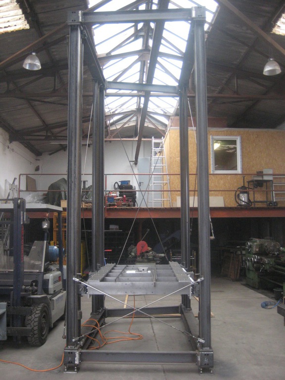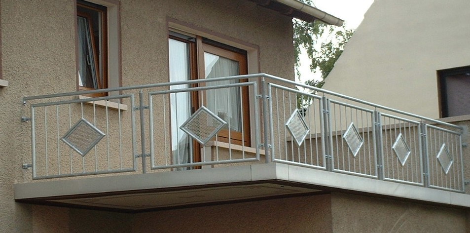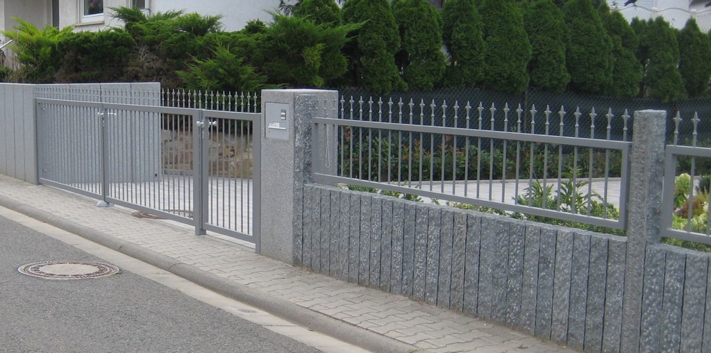 Bilderübersicht über die Anfertigung und die Montage einer Hauseingangstreppe mit Podest aus feuerverzinktem Stahl mit einem Geländer aus Edelstahl rostfrei geschliffen. Belag: Granitplatten Montage durch Steinmetz
