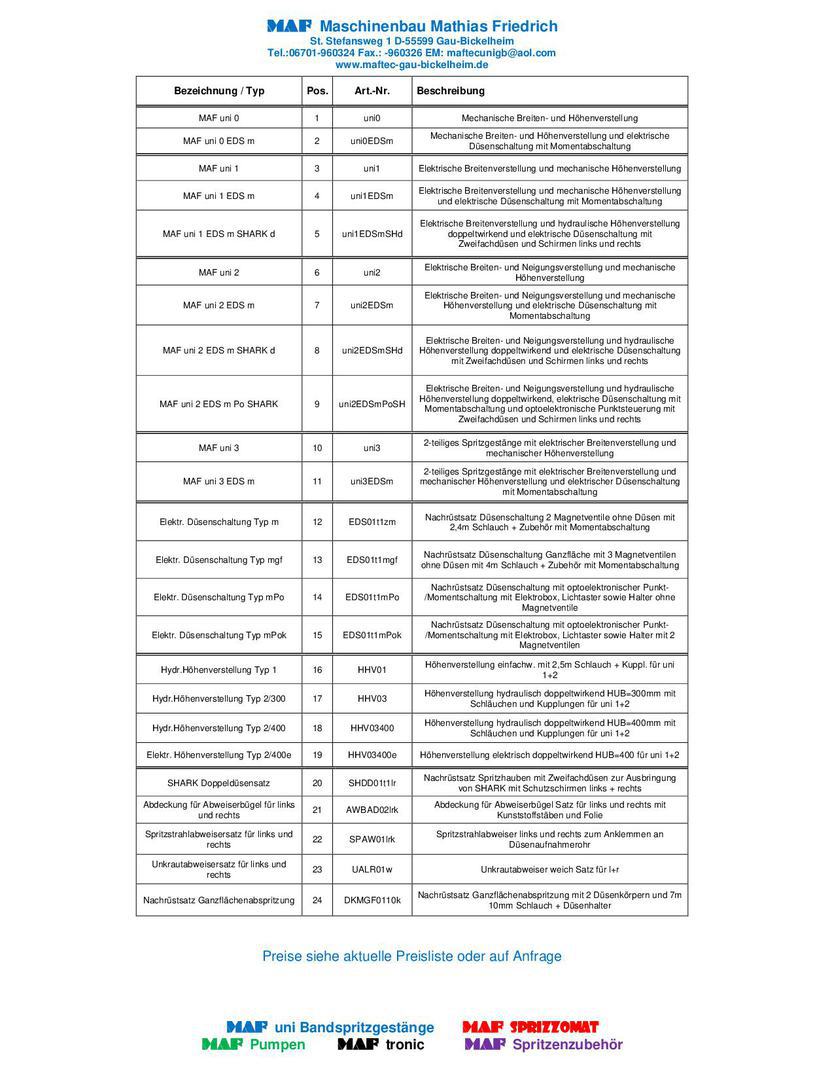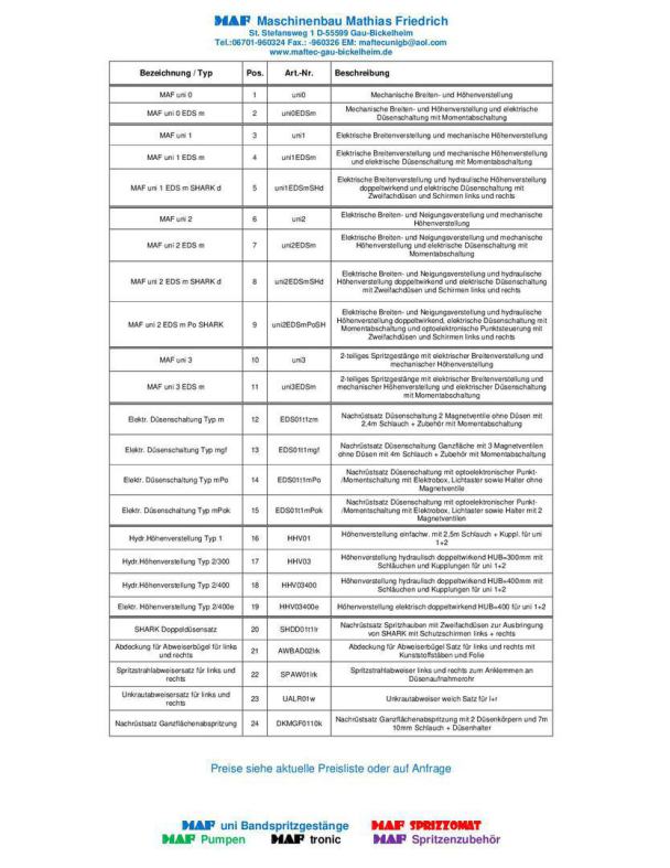 Prospekt MAF uni Bandspritzgestängesystem